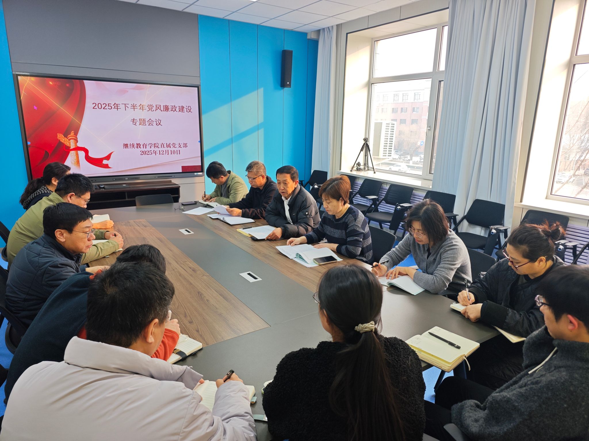 12月10日下午,继续教育学院在会议室302召开2025年下半年全面从严治党暨党风廉政建设专题会议,学院全体在职员工参加了此次会议,会议由党支部书记仲崇民主持。